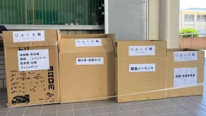 PTAで、リユース箱を設置させてもらいました。学年途中にもかかわらず、鍵盤ハーモニカや絵の具セット、体操着等の提供がありました。大切に使わせていただきます。