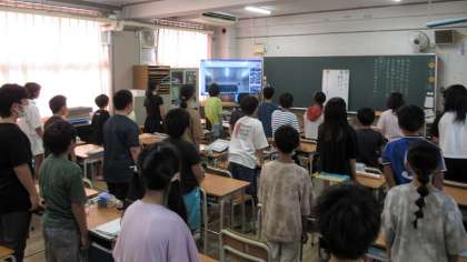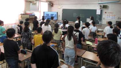 暑さが厳しいので、空調のある各教室で、オンラインの始業式を行いました。