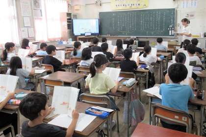 〔写真 左:6年生 中:3年生 右:2年生〕