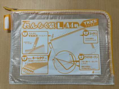 上から、書き方鉛筆・マイネーム、粘土ケース、連絡袋です。