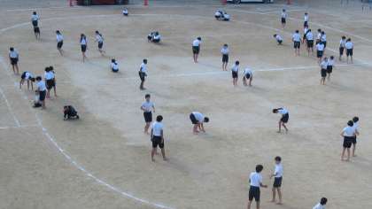 運動会でけがをしないように、6年生が、貴重な練習時間を割(さ)いて、運動場の小石を拾ってくれました。