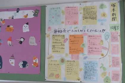 新聞委員会発行の塚本新聞に、「他学年の演技やリレーを早く見たい」とあるように、子どもたちは、自分たちの競技・演技とともに、上級生や下級生の競技・演技にも興味をもっています。