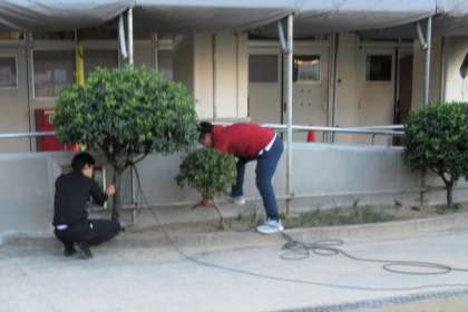 朝早くから準備をすすめています。トラックの整地、ライン引き、放送機器の準備…、