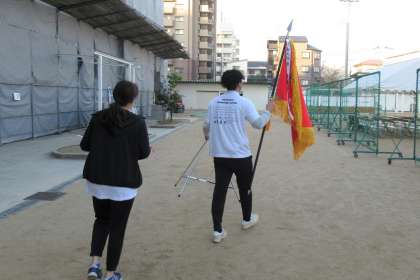 大切な優勝旗と準優勝盾が本部席に運ばれました。