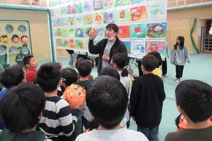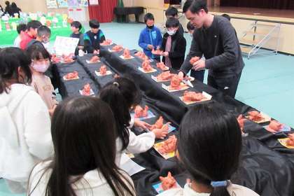 子どもたちが自分のつくった作品を運び入れました。個性あふれる力作をご覧ください。