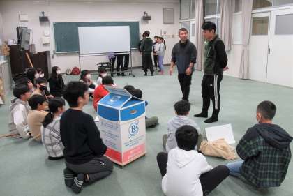 クイズ形式で、1年間に日本で出されるごみの量が、ゾウ694万頭分の重さに相当するそうで、ごみを減らすこと(リデュース)の大切さを伝えてもらいました。