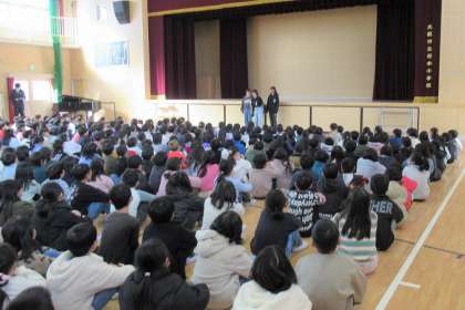 6年生の代表が、漢字検定の勉強をする等、3学期に向けて、冬休み中に取り組みたいことを述べてくれました。