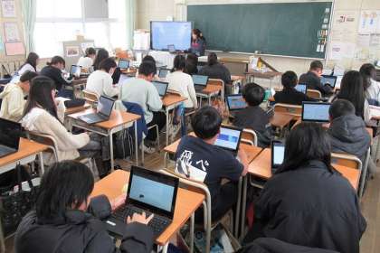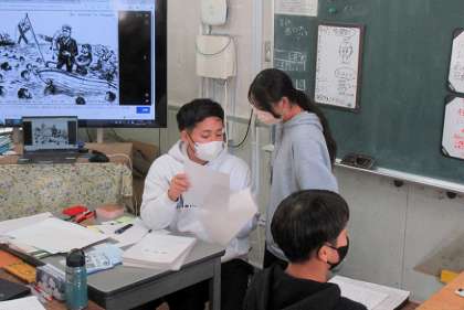 授業によっては、子ども自身に学習への姿勢や成果を振り返らせています。〔写真右は、6年 音楽〕