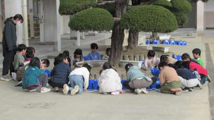 毎日、登校後や休み時間に、水をあげてきたチューリップの球根から芽がでました。