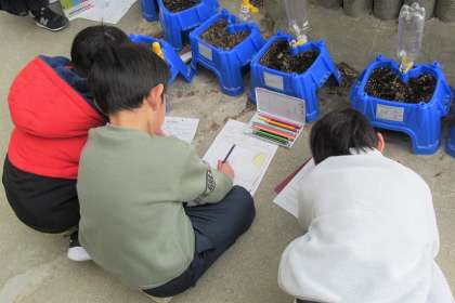 目で観察するだけでなく、手ざわりやかおりも確かめて、絵と文で記録しました。