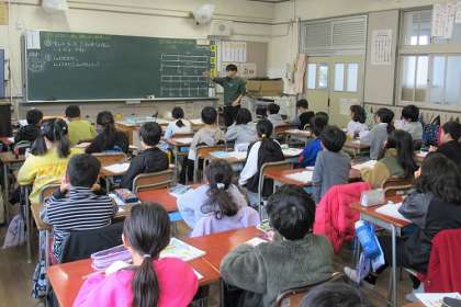 「1/5mのテープ6こ分の長さは?」、1より大きい数の分数の表し方を考えました。