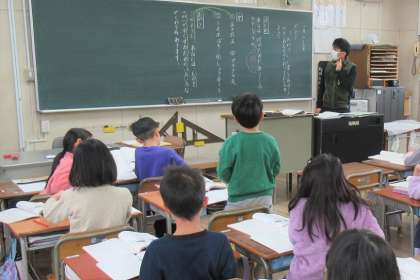教科書に書かれている五十円玉やコンセント、植木鉢、醤油さしの穴の役割や理由を読み取ります。