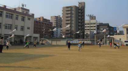 学年全体で、「ぐにゃぐにゃ凧」をあげました。
