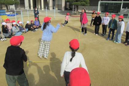 みんなで手拍子や声を出し、跳ぶタイミングをはかっていました。大なわとびの練習を通して、協力することの楽しさやあきらめないことの大切さを学んだと思います。