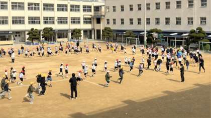 2日目も、元気に走る子どもたちの姿がありました。先生たちは、声をかけたり、一緒に走ったり、子どもたちのがんばりを応援します。逆走しながら、子どもに異変がないか確認する先生もいます。