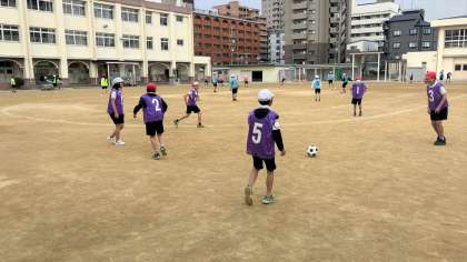 「サッカーボール」、パスを出す相手の名前を呼んでから、ボールをけります。