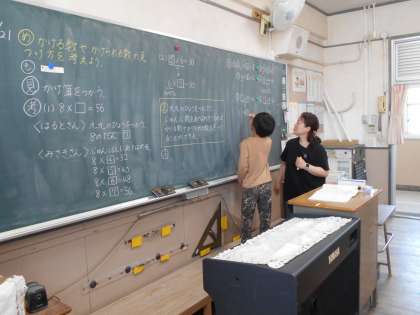 4月21日 算数で、かけ算のきまりについて学習しました。たとえば、かける数とかけられる数を前後入れ替えても答えは同じになるということです。これから他の規則性についても学習していきます。