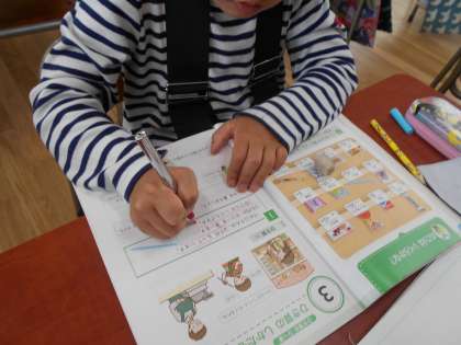 4月28日 算数で2けたの足し算と引き算の学習をします。問題をよんで式を立てました。
