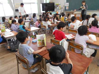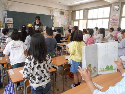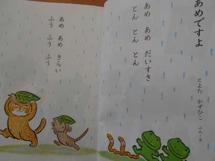 5月8日 国語で「あめですよ」を学習しました。文の中から自分でおもしろいと思うところをさがしながら読みました。