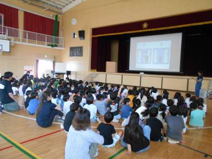 5月19日 1・2・3年生を対象に防犯教室が行われました。淀川区役所から講師の方に来ていただき、登下校の安全について学習しました。