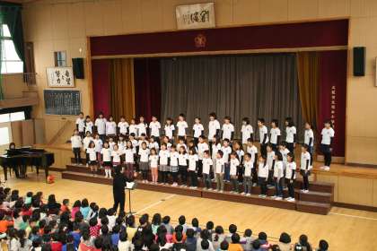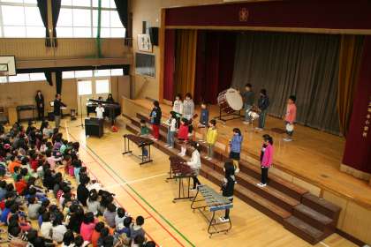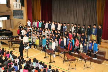 音楽クラブ、合唱団、高学年児童の演奏と歌、最後は、♪しあわせ 運べるように♪を全校で合唱し、締めくくりました。