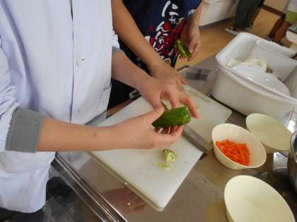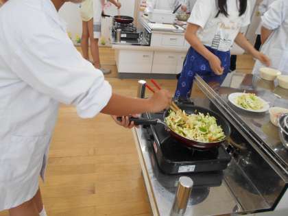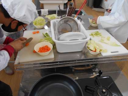 5月27日 家庭科で野菜炒めをつくりました。キャベツ にんじん ピーマンを炒めました。