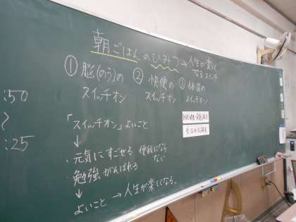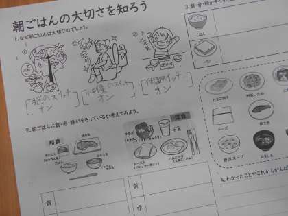 6月10日 外部から講師にきていただき、5年生が栄養教育の授業を受けました。内容は朝食をとるメリットについてでした。