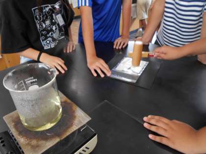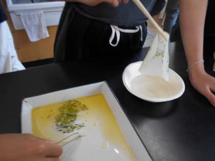 7月1日 理科で光合成について学習しました。日光に当てた葉からでんぷんを抽出してヨウ素液で染めました。