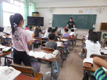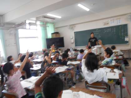 7月9日 国語でローマ字を学習しています。「にっぽん」のように小さい「つ」が入ったときの書き方や、りょこうのような小さい「よ」が入ったときの言葉の書き方を確認しました。