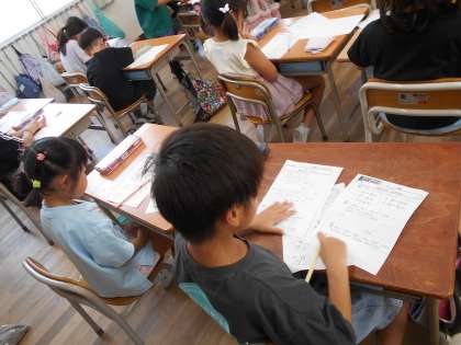 7月10日 1学期も残り1週間と少しとなっています。学習は復習をしています。算数では足し算の練習プリントに取り組みました。