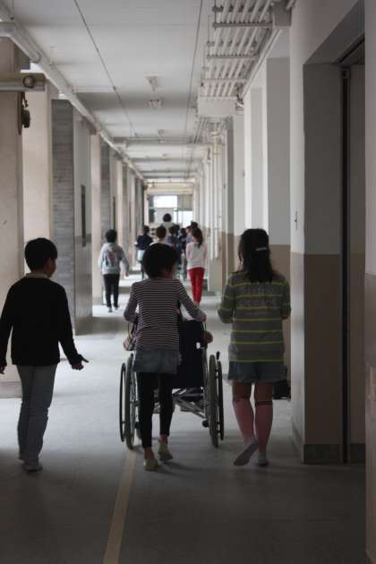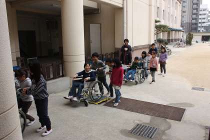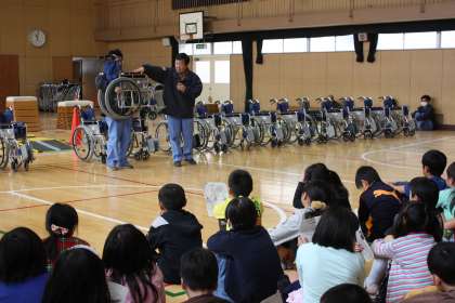 3年生が、総合的な学習の時間に、車いすの介助や乗車体験をしました。