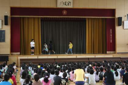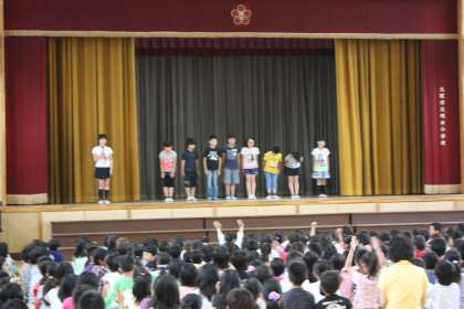 修学旅行で6年生がいないので、今日の児童集会は5年生が担当しました。