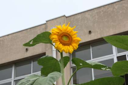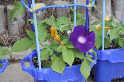 1年生が育てているアサガオとヒマワリの花が咲き始めました。