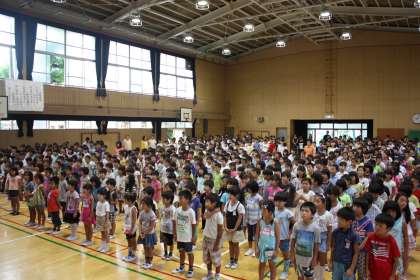 代表で3人の児童が2学期のめあてを発表し、2学期に向けての意気込みを表しました。