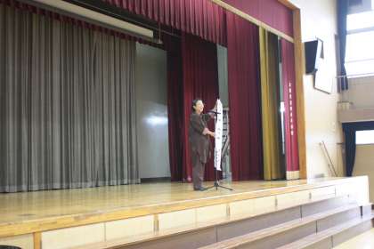 校長先生のお話を聞き、全員が自分のめあてをしっかりもってがんばろうと約束しました。