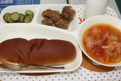 バジルのきいた「ミラノ風カツレツ」、トマトの入った具だくさんスープ「ミネストローネ」がイタリアンでした。