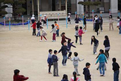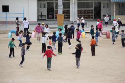 休み時間になわとびをして、健康作り、体力作りをすすめます。
