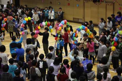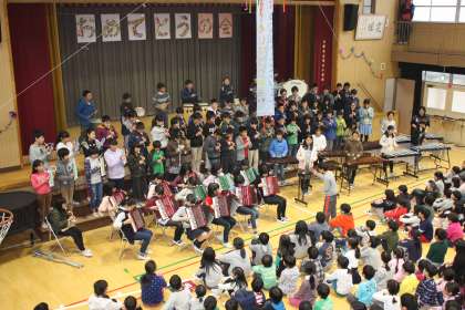 6年生からは、手作りぞうきんと音楽のプレゼントがありました。