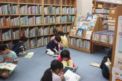 読書タイムでは、自分のお気に入りの本を見つけ、思い思いの場所で読書を楽しんでいました。
