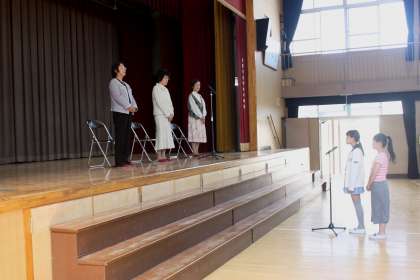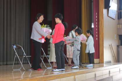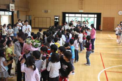 平成28年度末をもって塚本小学校を去られた先生方をお招きして、離任式を行いました。