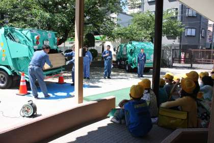 パッカー車で、実際にたんすを破砕しながら収集する様子を見せてもらいました。
