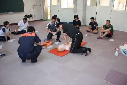 淀川消防署より、救急隊員の方に来ていただき、救急救命講習会を行いました。