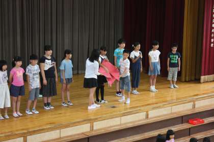 発表の後、折り紙でつくる金魚の折り方を大きな紙を使って、わかりやすく教えてくれました。