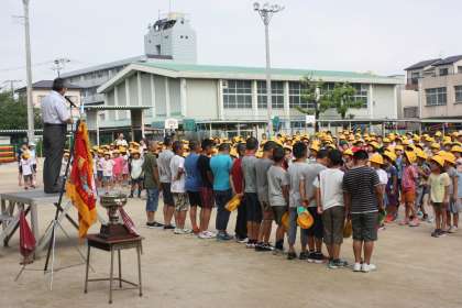 朝会では、チームの子ども達のがんばりをみんなでたたえました。