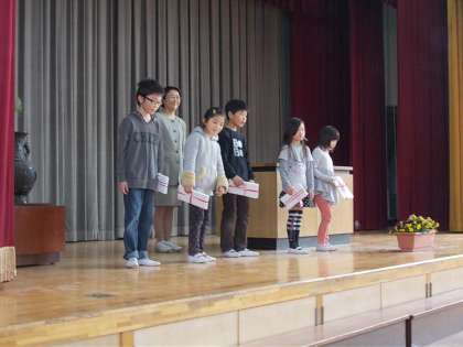 校長先生より各学年の代表児童に修了証が手渡されました。