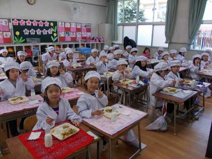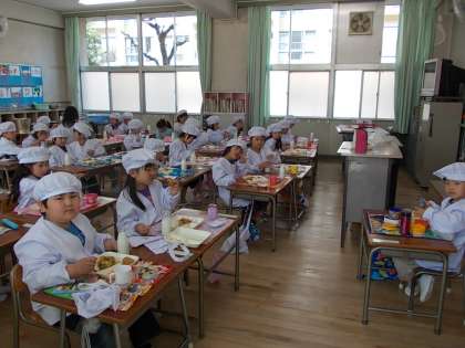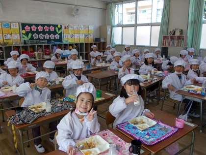 今日は、入学お祝い献立で、カツカレーライス、ミニフィッシュ、デザートがフルーツ白玉でした。