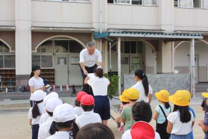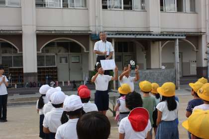 児童朝会であらためて表彰し、全校児童にお知らせしました。