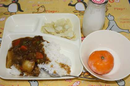 食物アレルギー対応で、小麦粉の代わりに米粉を使ったカレールーの素が使われています。