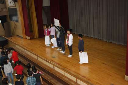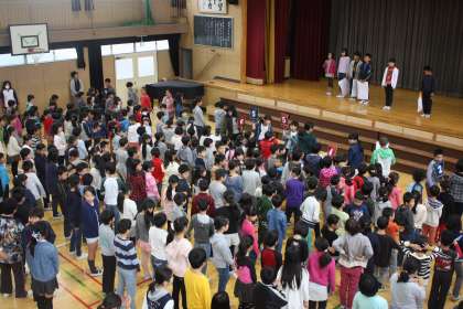 延期になっている全校遠足に向けて、内容を工夫して実施しました。