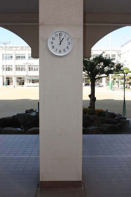 この時計は、創立50周年記念事業のひとつとして学校に贈られたもので、毎日子どもたちの登下校を見守ってくれていました。